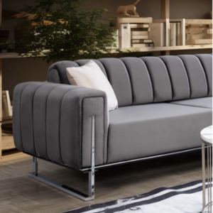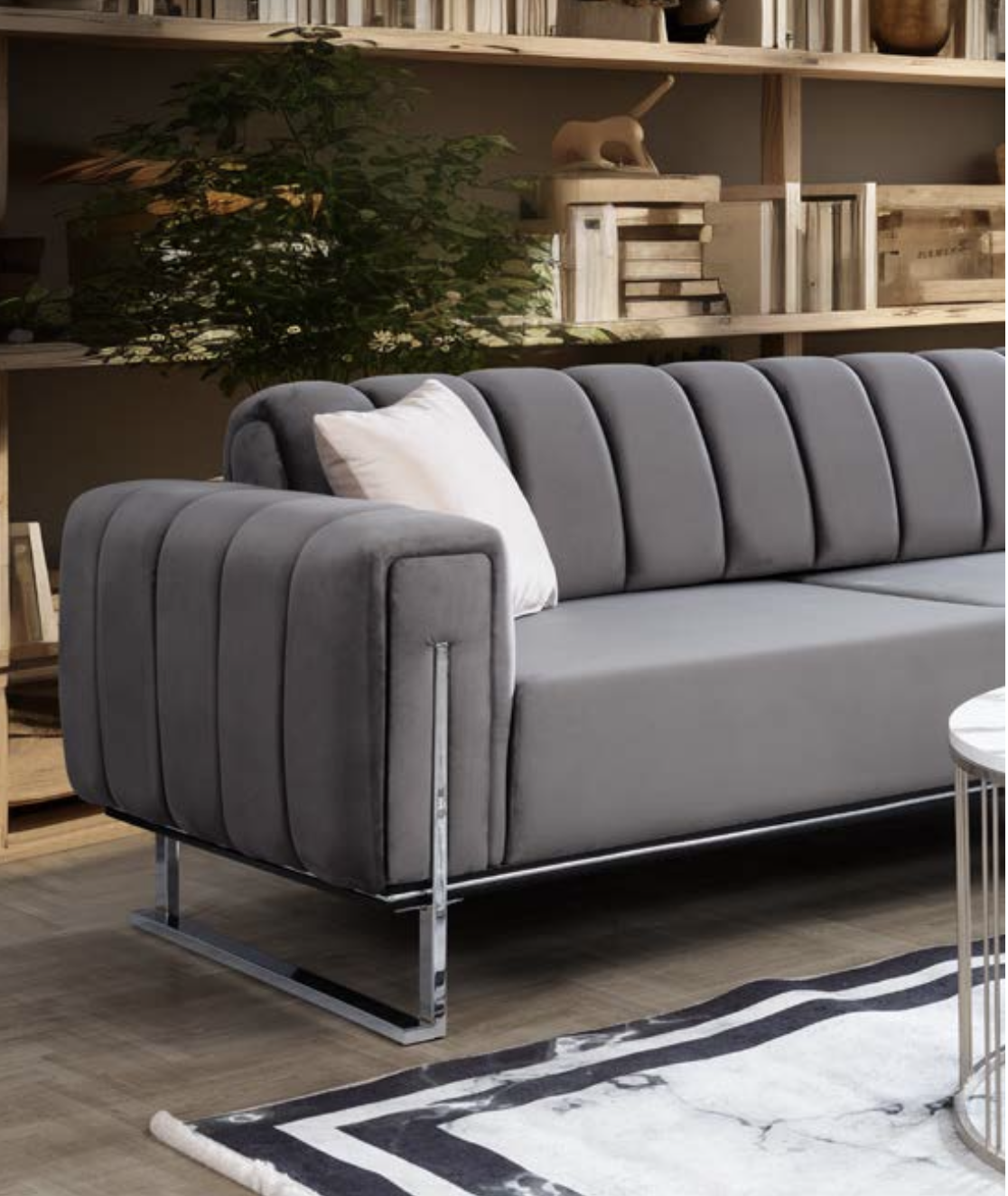 Banquette BAROQUE Capitonnée Chrome en velours moka