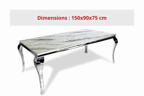 Table à manger baroque chrome marbre blanc 150x90x75 cm