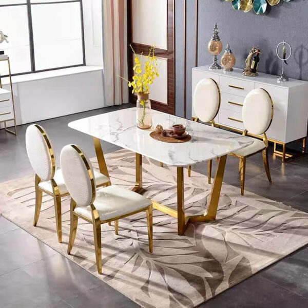 Table à manger GOSSIP plateau en Granite Marbré Blanc gold