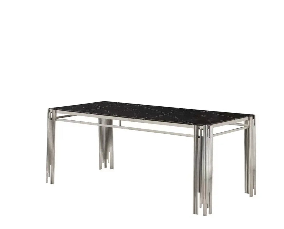 Table à manger XXL FLUTE Chrome Plateau en verre Marbré 180 cm marbré noir