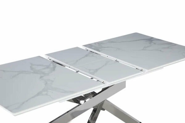 Table extensible AGATHE Chrome plateau Céramique marbré blanc