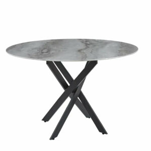Table a manger ronde JESSICA XXL Métal noir 120 cm 4 couverts marbré gris