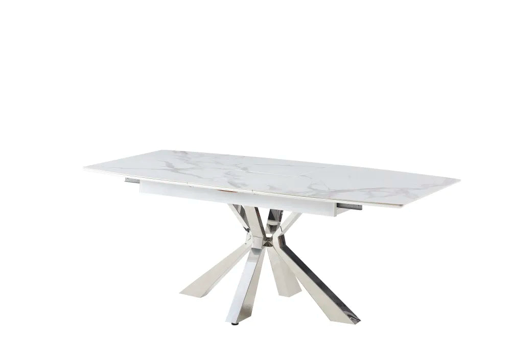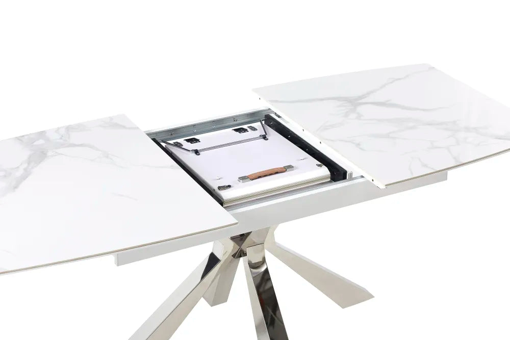 Table extensible BIANCA Chrome plateau Céramique marbré blanc